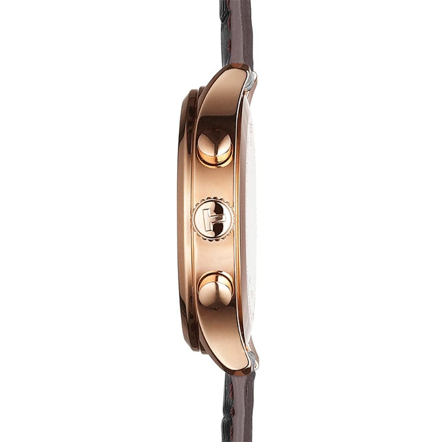 Larger than life, the Tissot Chrono XL is characterized by its big case that has a diameter of 45mm. The size of the dial makes time easily readable, with contemporary Arabic numerals at 12, 3, 6 and 9 o’clock. The chronograph function adds to its urban style.