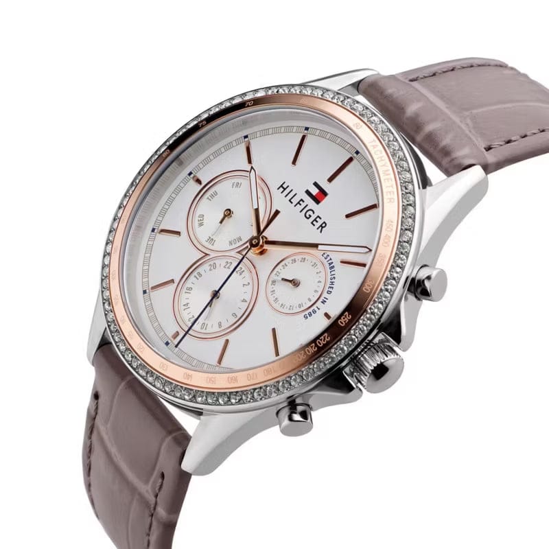Tommy Hilfiger Ari Diamonds White Dial Grey Leather Strap Watch for Women - 1781980