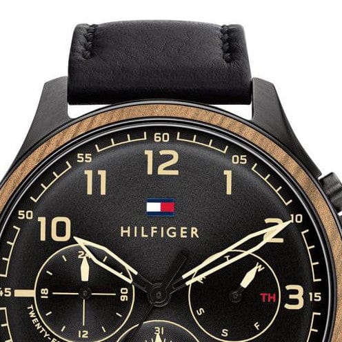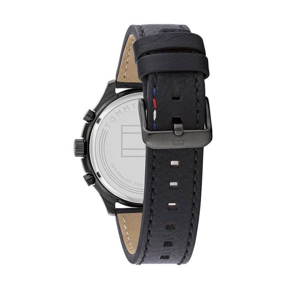 Tommy Hilfiger Asher Chronograph Black Dial Black Leather Strap Watch For Men - 1791854