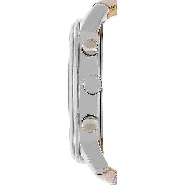 The case of the model is made in a classic silver color. The material is high-strength stainless steel. The dial is reliably protected by mineral glass. The display design will captivate you from the first minute with its delicate combination of silver canvas and pink indication. Three mini displays reflect additional features. The width of the model case is 38 mm. Water resistance is 30 m. Powder-pink leather strap is attached to the case very firmly. The buckle is steel, reliable. Belt holder with engraving of the brand name.