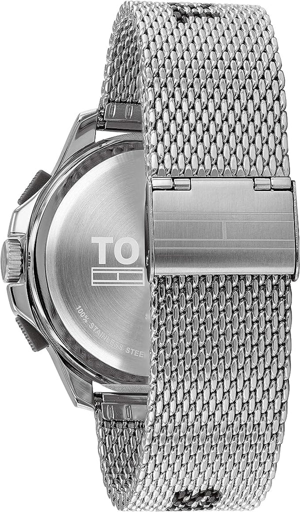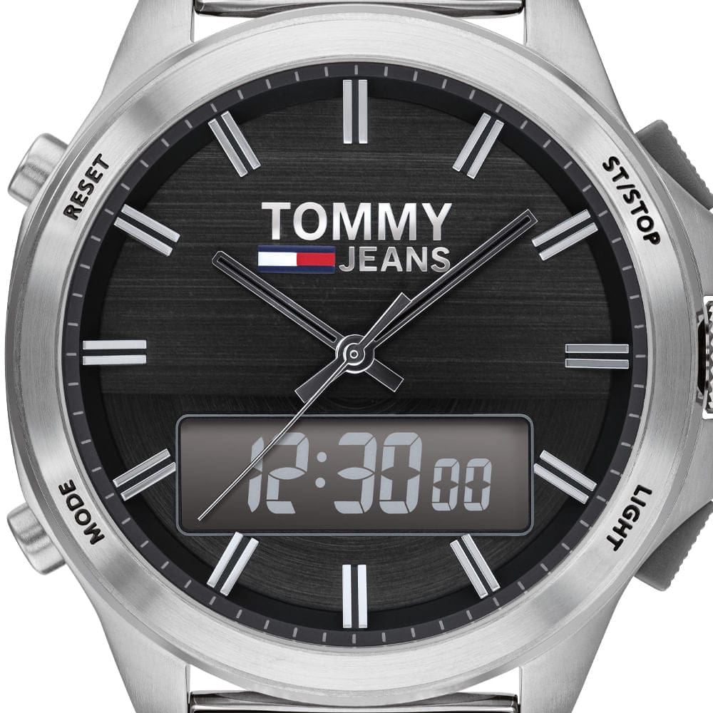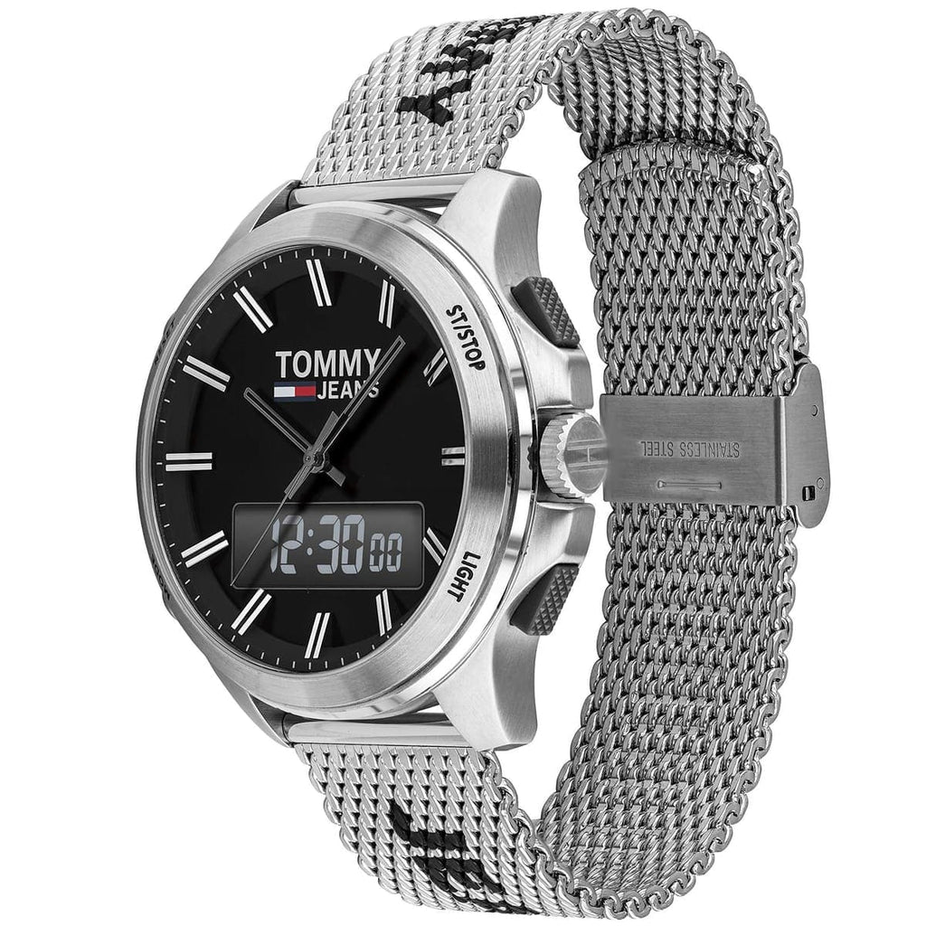 Designed in a sturdy, stainless steel case with a Tommy Jeans-branded stainless steel mesh strap. Part of the Tommy Jeans collection.