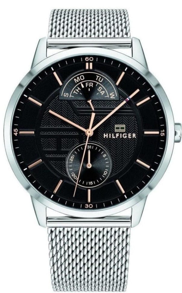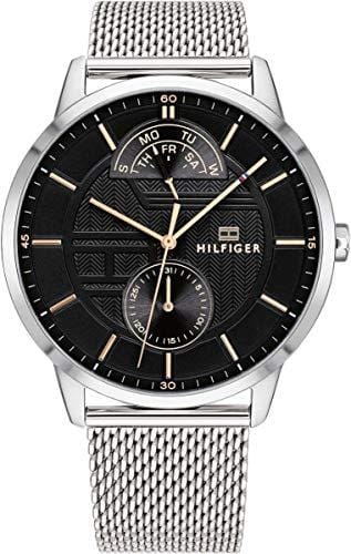 Tommy Hilfiger Hunter Quartz Black Dial Silver Steel Strap Watch for Men - 1791610