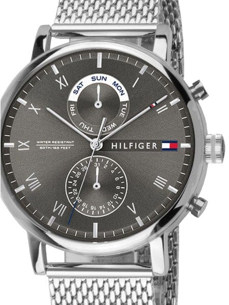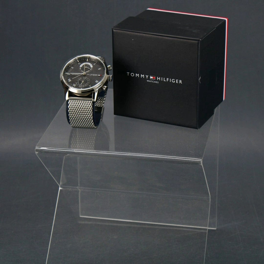 Tommy Hilfiger Kane Black Dial Silver Mesh Bracelet Watch for Men - 1710402