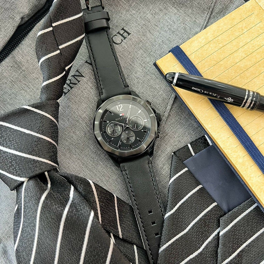 Tommy Hilfiger Lars Chronograph Black Dial Black Leather Strap Watch For Men - 1792062