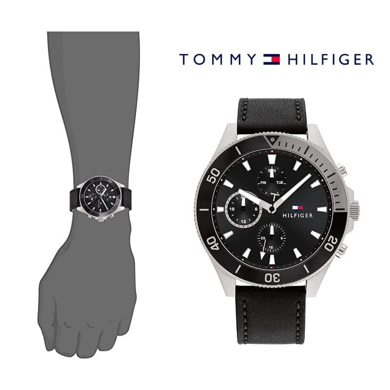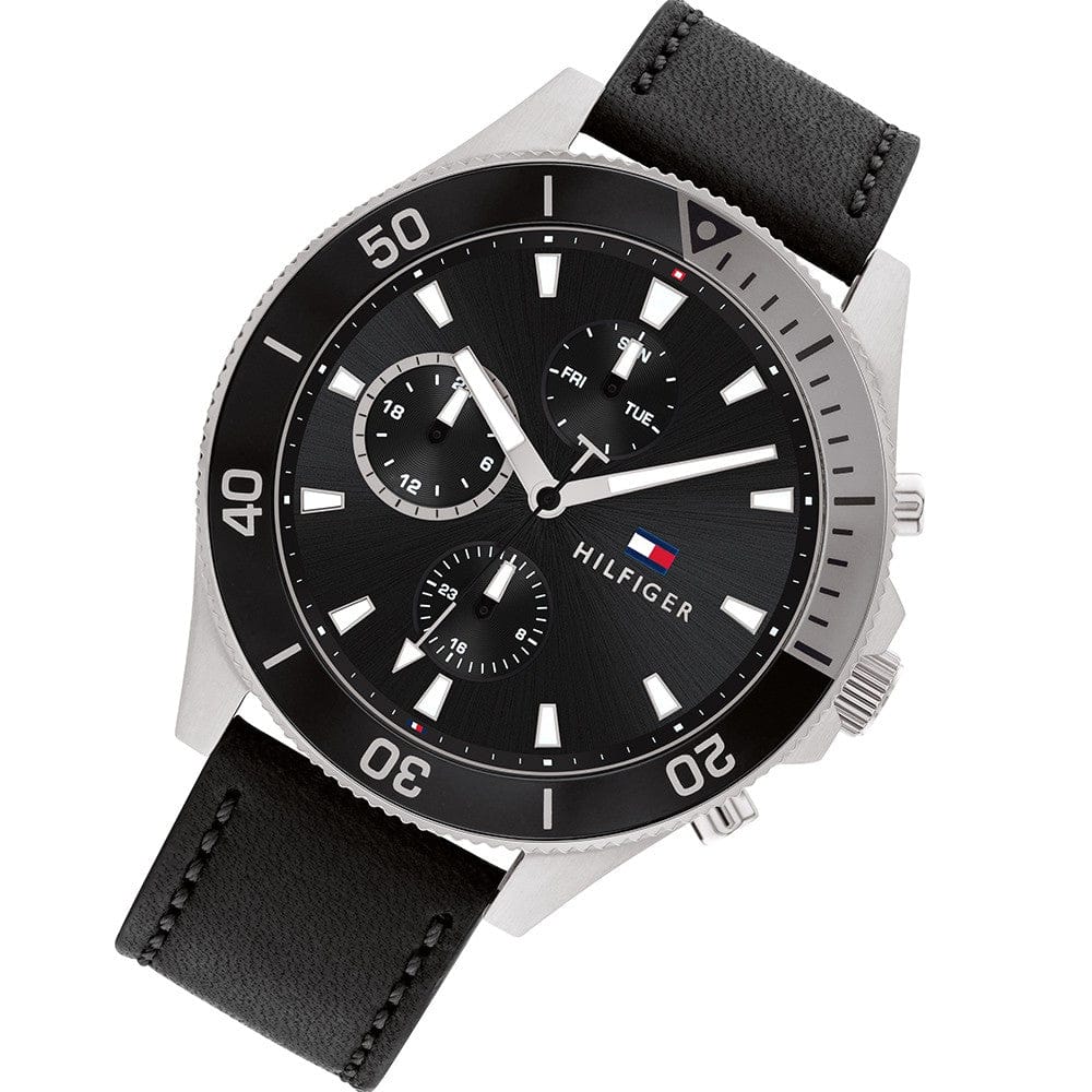 Tommy Hilfiger Larson Chronograph Black Dial Black Leather Strap Watch For Men - 1791984