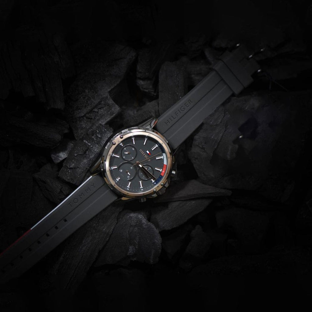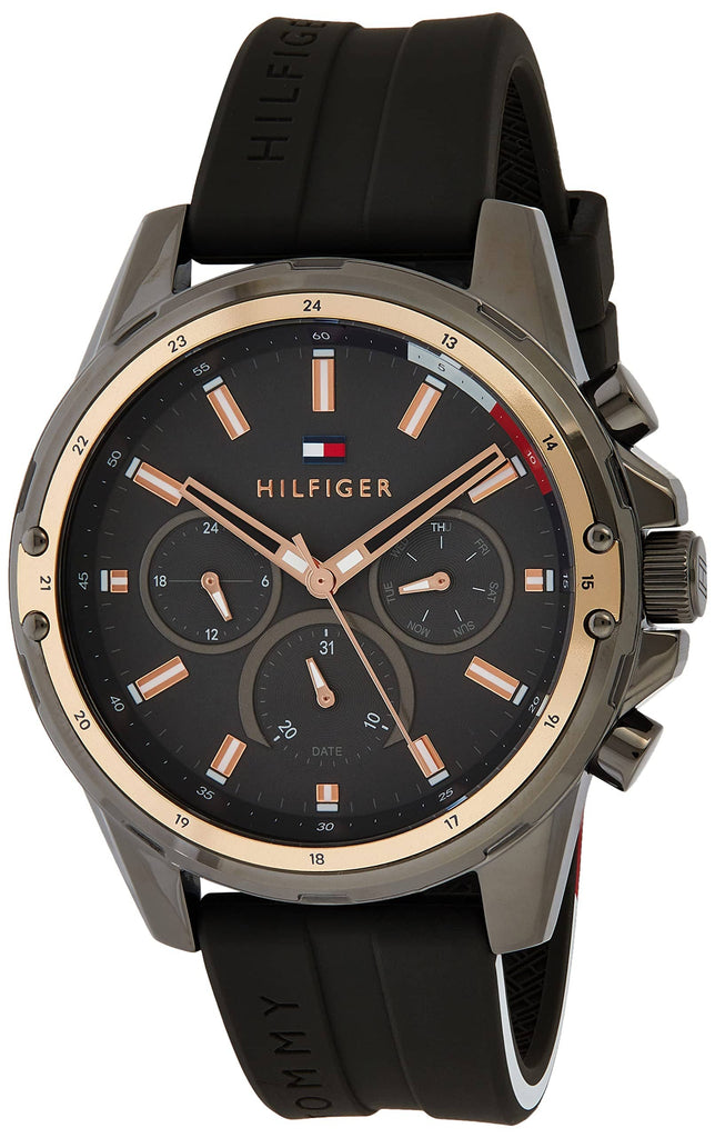 Tommy Hilfiger Mason Black Dial Black Rubber Strap Watch for Men - 1791792