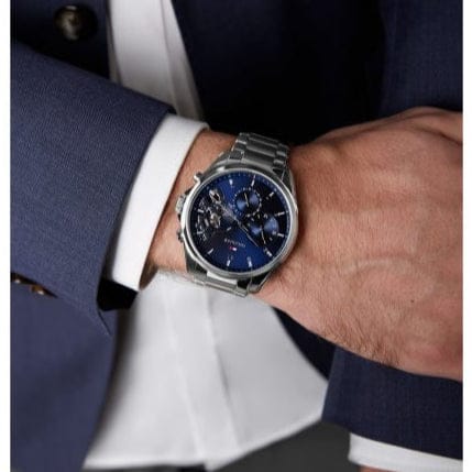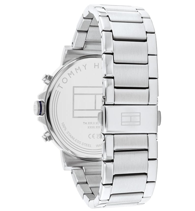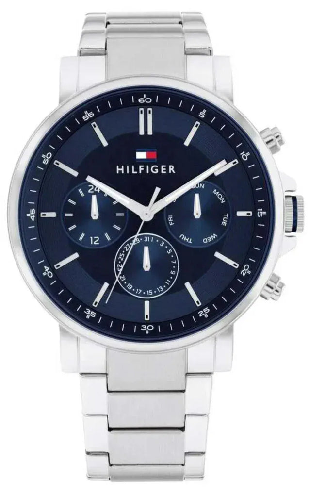Elevate your style with the Tommy Hilfiger Tyson Chronograph Watch. Featuring a sleek blue dial and silver steel strap, this watch exudes sophistication and versatility. Keep track of time and make a statement with this iconic timepiece.
