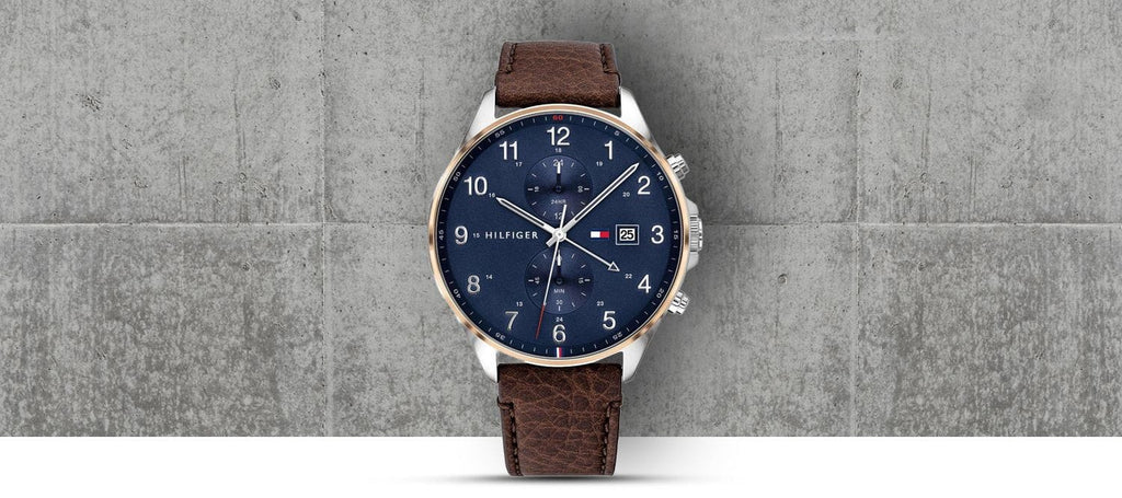 Tommy Hilfiger West Chronograph Blue Dial Brown Leather Strap Watch For Men - 1791712