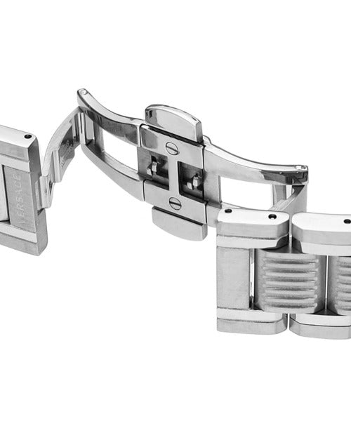 Greca Action Chrono is a new iconic and bold watch that rediscovers the beauty and the charm of the Versace brand DNA. The 45mm case is empowered by the Medusa at 12H, La Greca engraved of the top ring and Versace lettering at 7H. The watch features a 3-hand chronograph movement and unique bracelet.