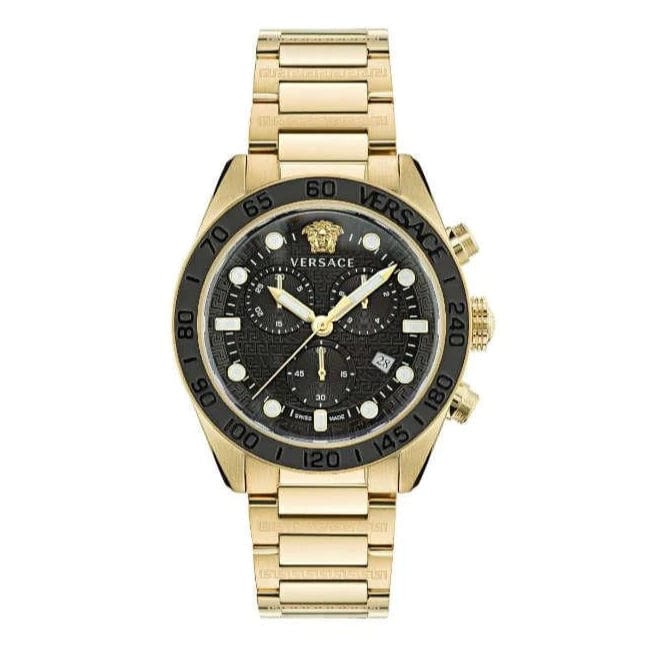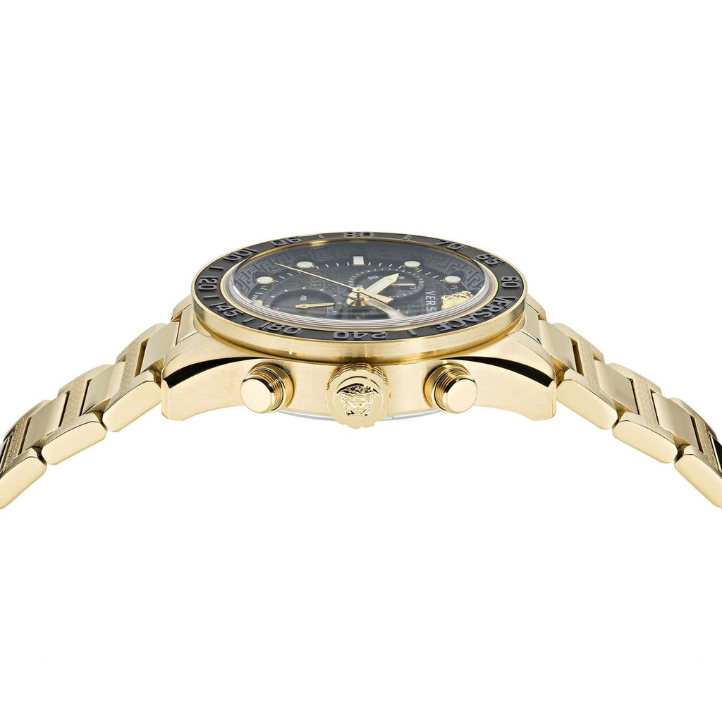 Versace Greca Dome Chronograph Black Dial Gold Steel Strap Watch for Men - VE6K00523