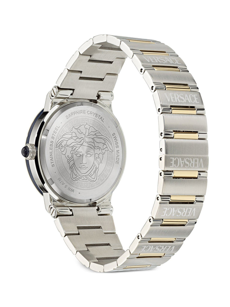The Versace Greca Logo VE7G00524 watch is a unique model that catches the eye with its elegance and careful craftsmanship. It features a silver-colored stainless steel envelope, whose width is 38 mm. The mother-of-pearl dial adds subtlety to it, and it is covered by a sapphire crystal glass with anti-reflective coating, which ensures excellent clarity. The stainless steel bracelet in silver-gold color blends perfectly with the whole, creating a harmonious and stylish whole. The watch is waterproof to 50 meters, which makes it practical for everyday use. The quartz mechanism guarantees convenience of use. This is a model that is sure to please those who appreciate high quality and unique style.
