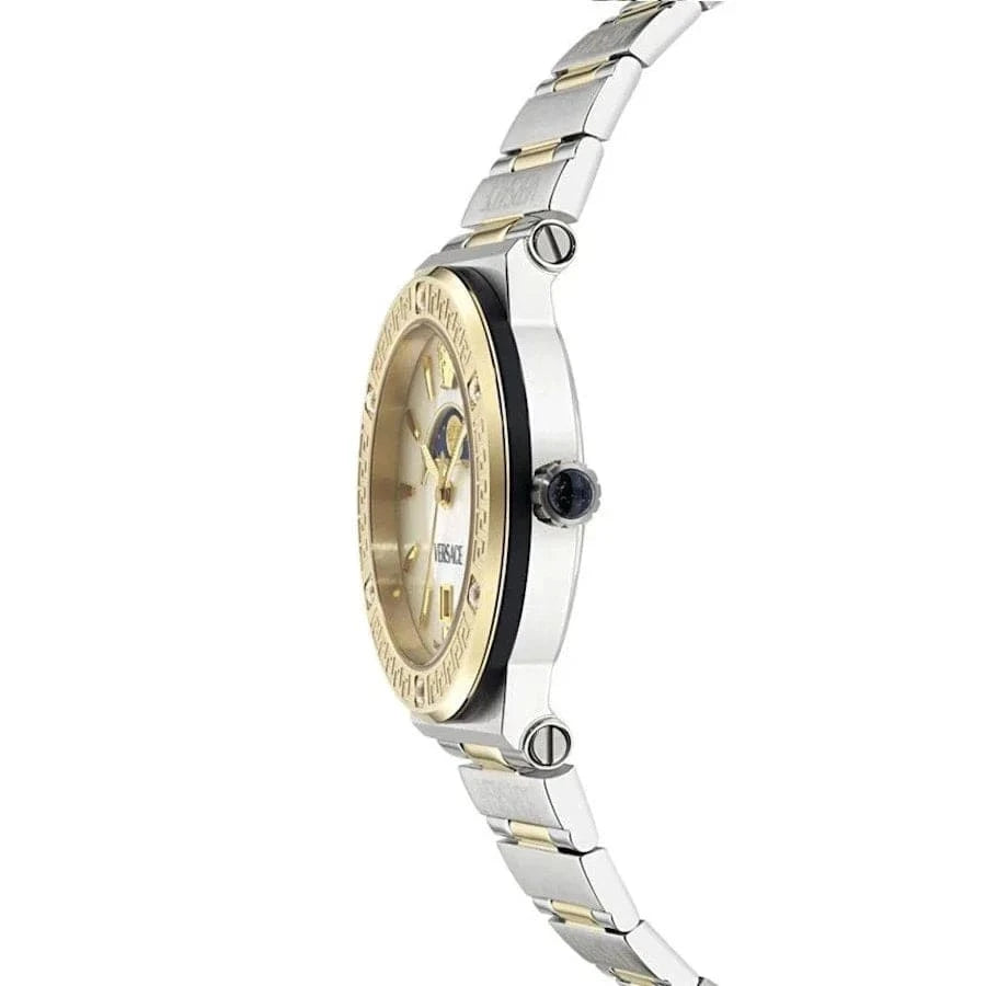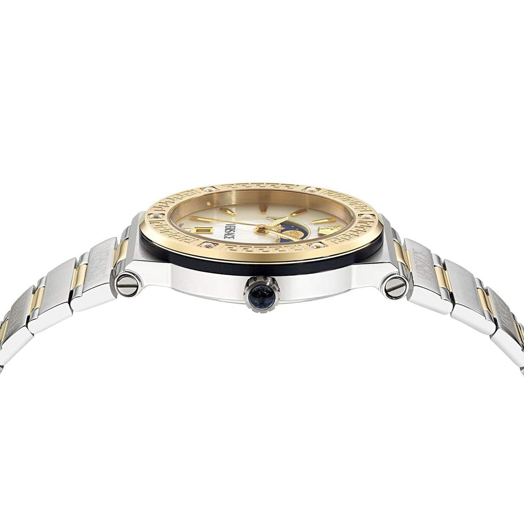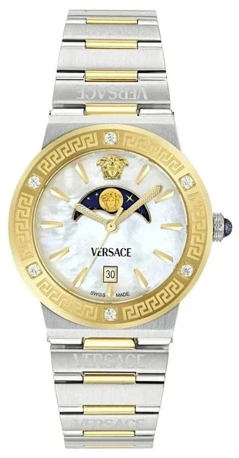 Versace Greca Logo Moonphase Mother of Pearl Dial Two Tone Steel Strap Watch for Women - VE7G00524