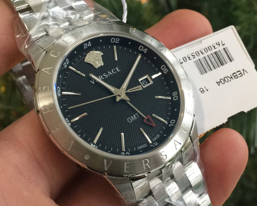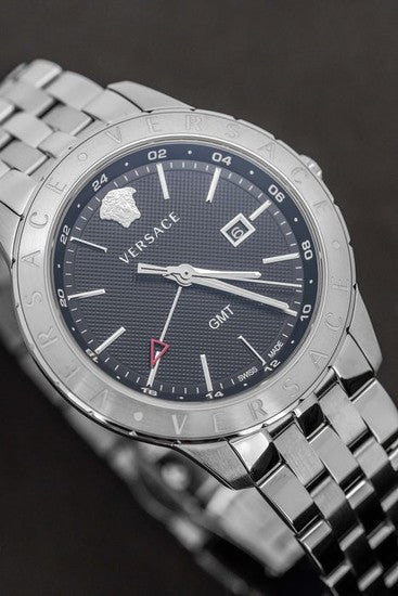Univers is the new watch for the ultimate globetrotters by Versace. The ultra-slim case and GMT indicator are the perfect combination for new generation businessmen. The iconic Versace touch is expressed by the Medusa Head, the Versace logo at 12 o'clock and the Versace logo engraved on the bezel. Its minimal design and business-urban character make Univers a watch with a timeless elegance.