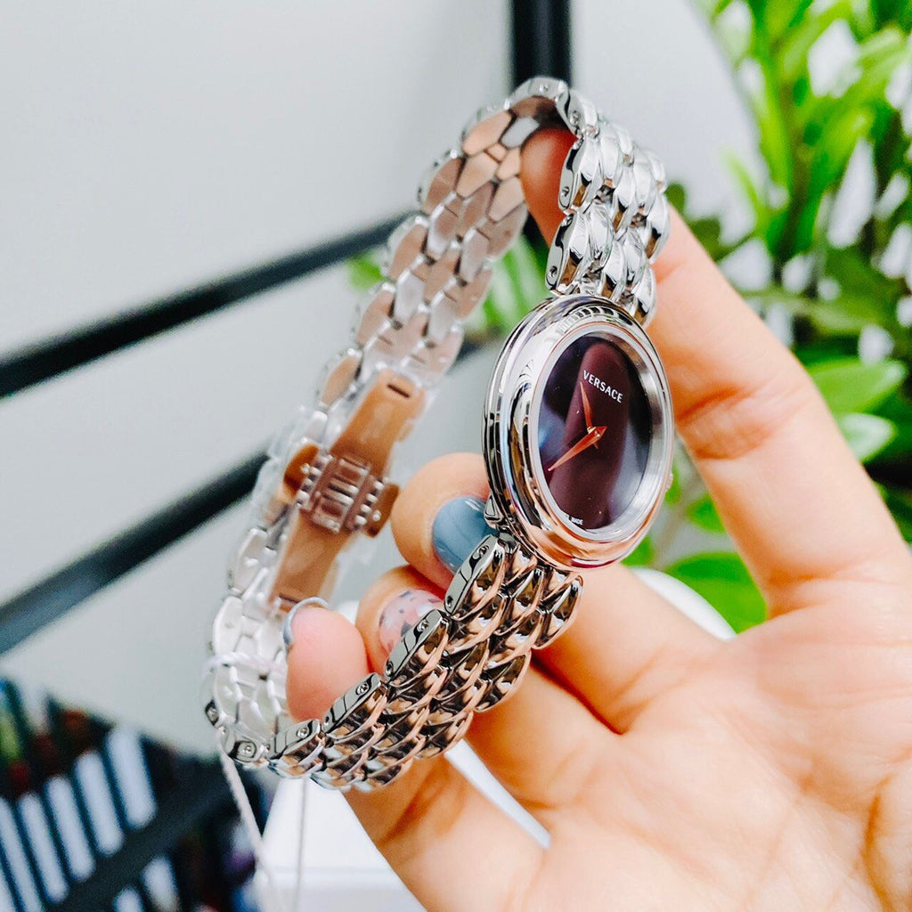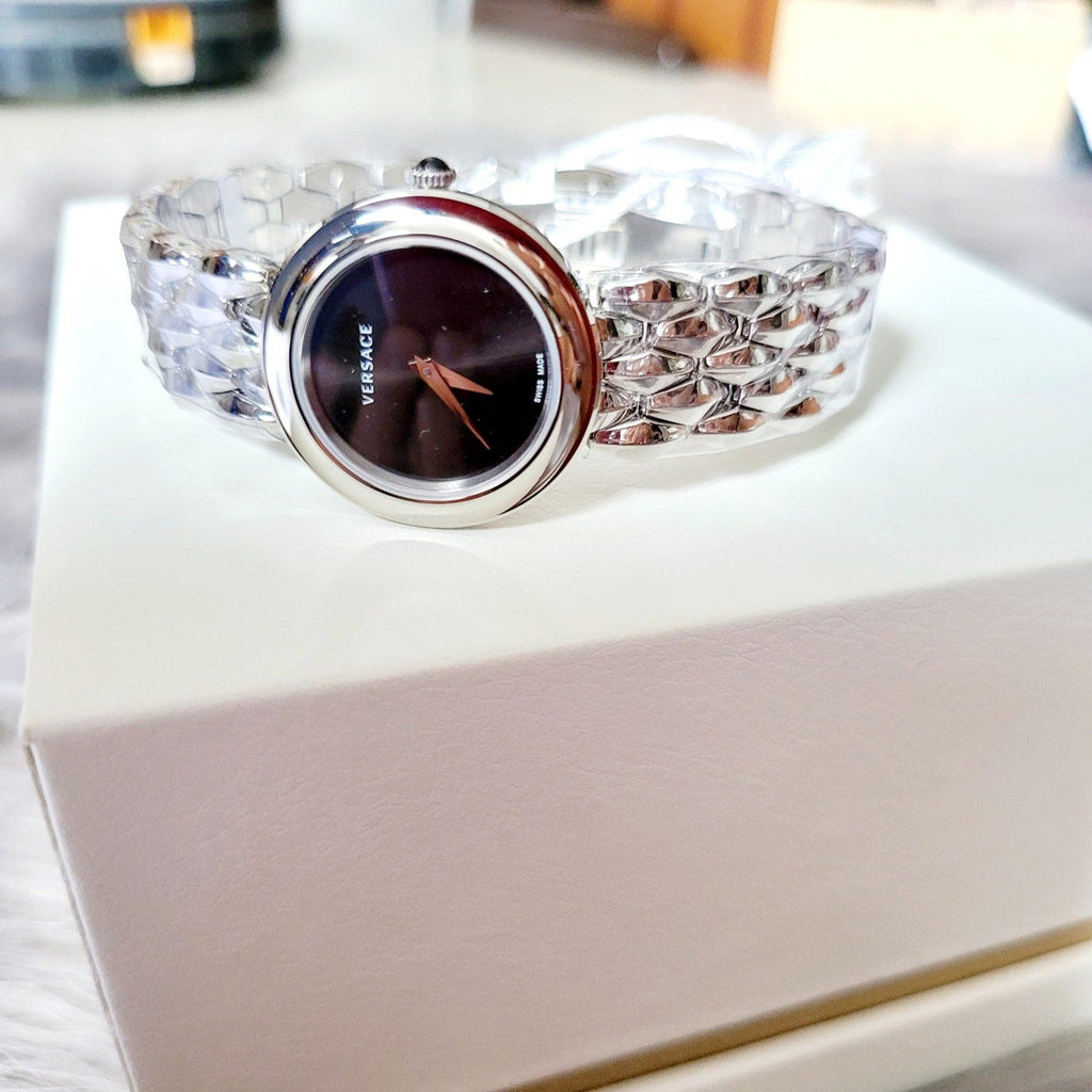 Elevate your style with the Versace V-Flare Quartz Black Dial Silver Steel Strap Watch for Women! This stunning timepiece features a bold black dial and sleek silver steel strap, exuding confidence and sophistication. Perfect for any occasion, this watch is a must-have in every fashionista's collection.
