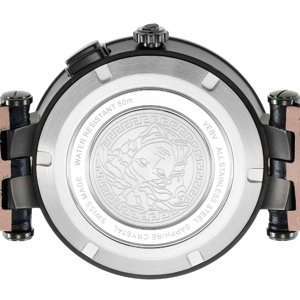 Versace V Race Chronograph Quartz Blue Dial Blue Leather Strap Watch For Men - VEBV00419