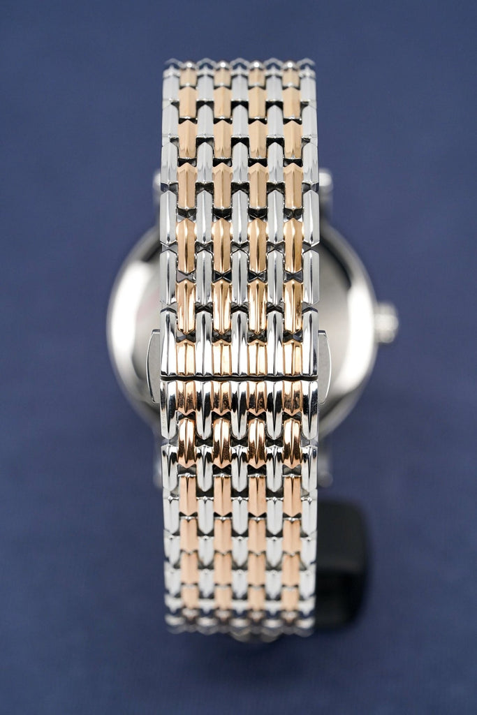 - This watch has a round case shape with an anti-reflective sapphire glass. It also has a butterfly closure that ensures secure wear.